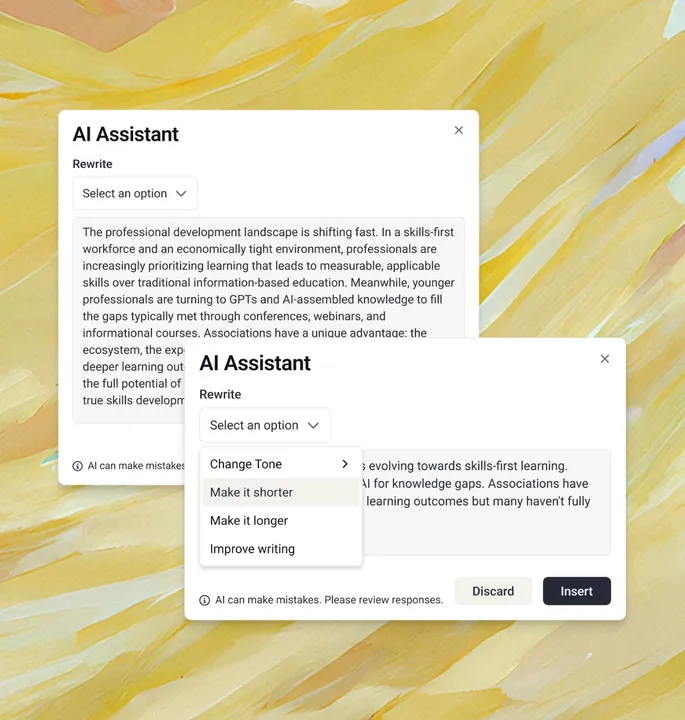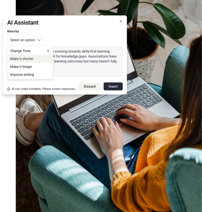 The same platform foundation that powers AI Writing Assistant will support future AI experiences across learning, events, and support.